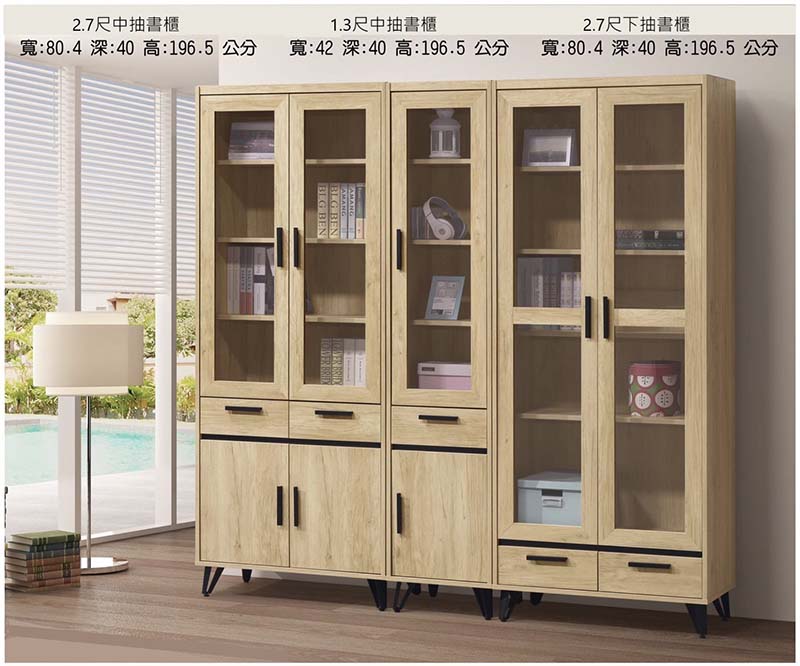 2.7尺中抽書櫃:寬80.4、深40、高196.5公分